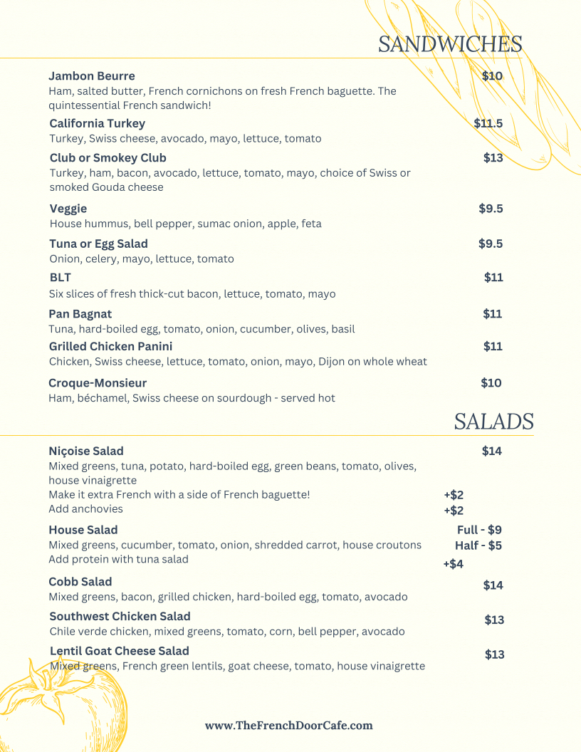 Located in Carlsbad, California, California Cafe offers a delightful culinary journey inspired by French flavors. The menu features a range of mouthwatering sandwiches, salads, and desserts that showcase freshness and creativity.